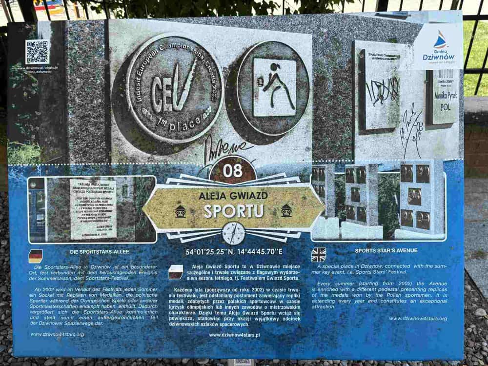 Dziwnów słynie z wyjątkowej atrakcji – Alei Gwiazd Sportu, gdzie można znaleźć tablice upamiętniające wybitnych polskich sportowców. Spacerując aleją, można natknąć się na odciski dłoni znanych postaci sportowych, takich jak olimpijczycy czy mistrzowie świata. Jest to ciekawy punkt na mapie miasta, który łączy historię sportu z wakacyjną atmosferą. W okolicy często organizowane są wydarzenia sportowe, a w sezonie letnim można spotkać tu znane osobistości ze świata sportu.